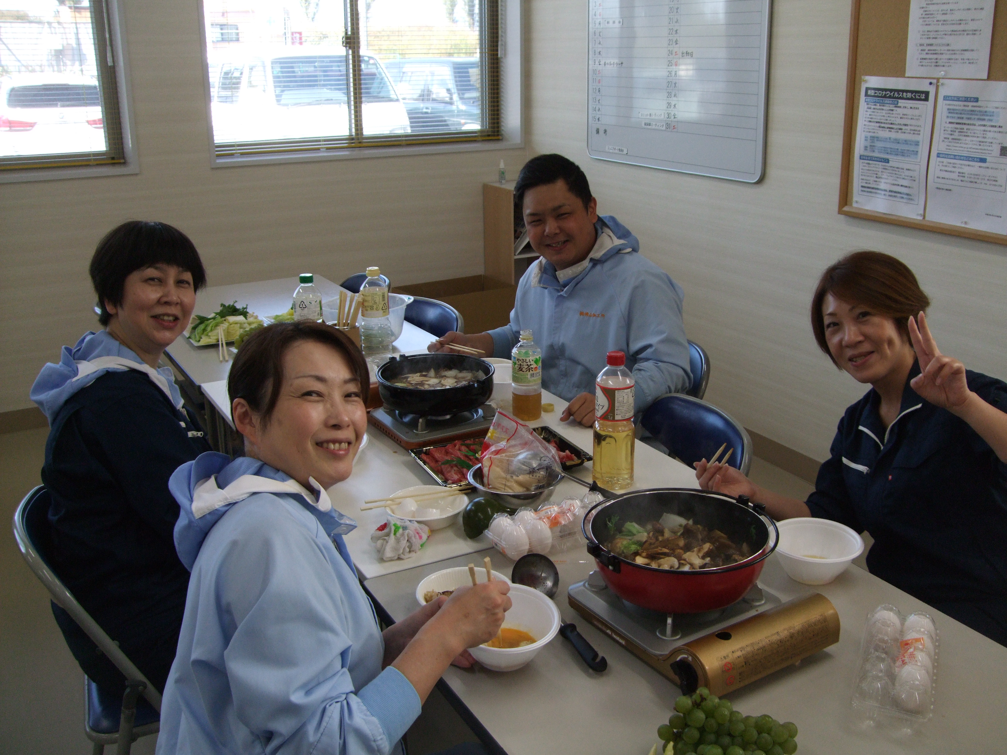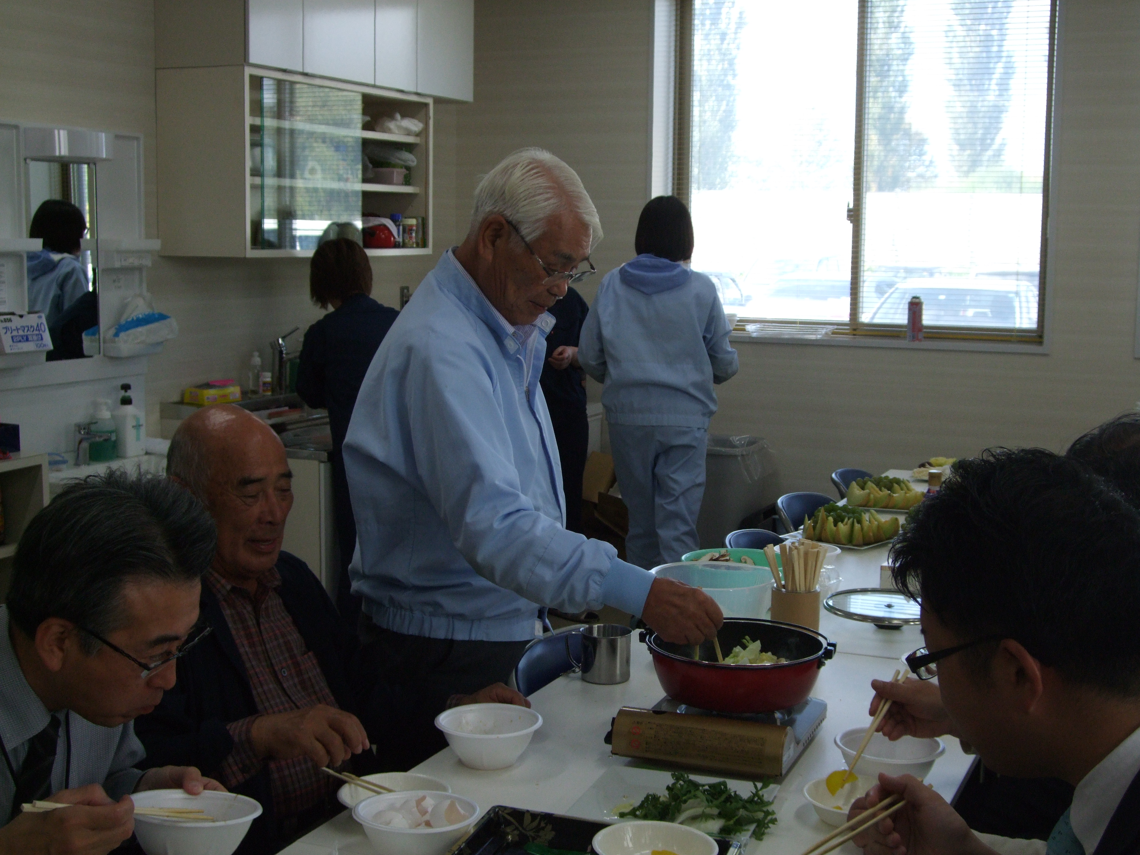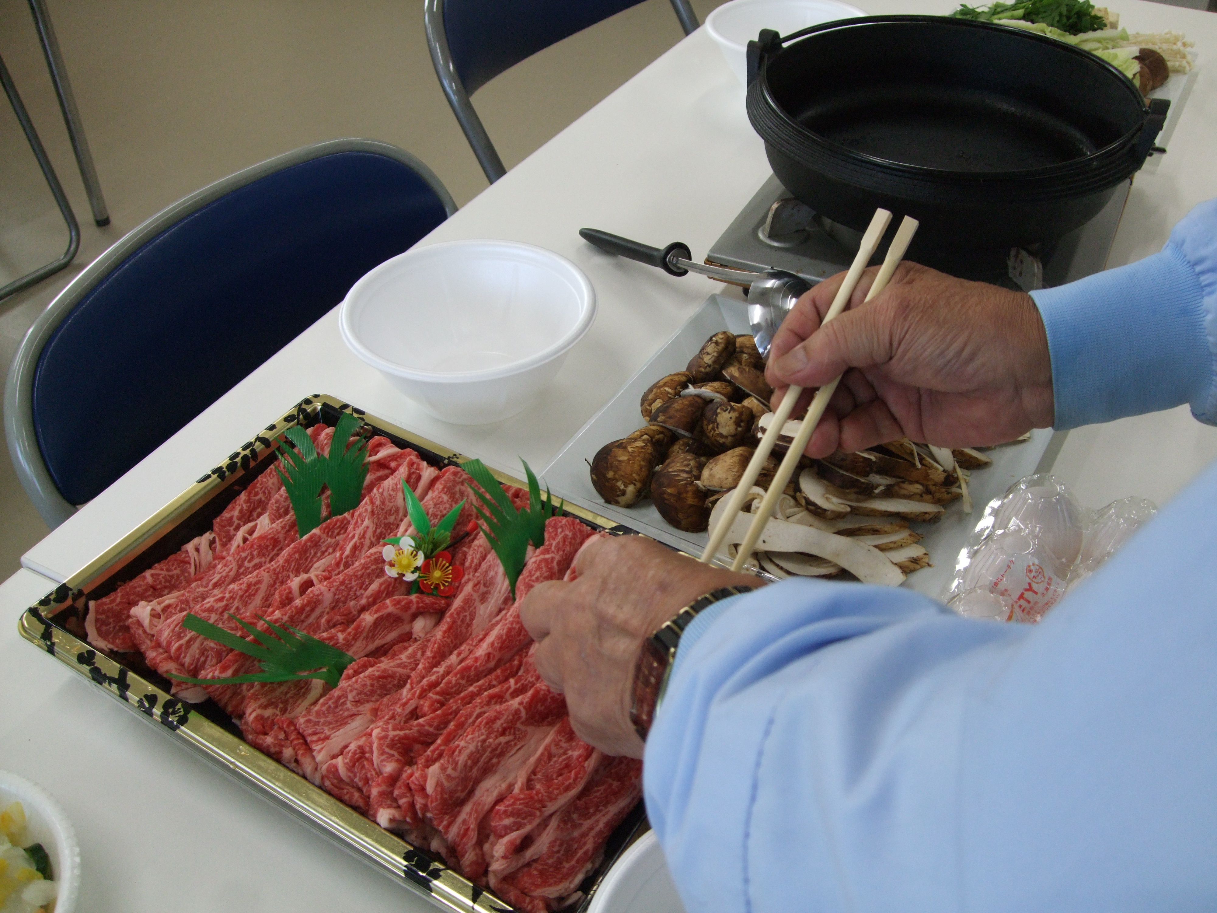 毎年、会長が社員のみんなとお客様にまつたけのすき焼きを振舞ってくれます。