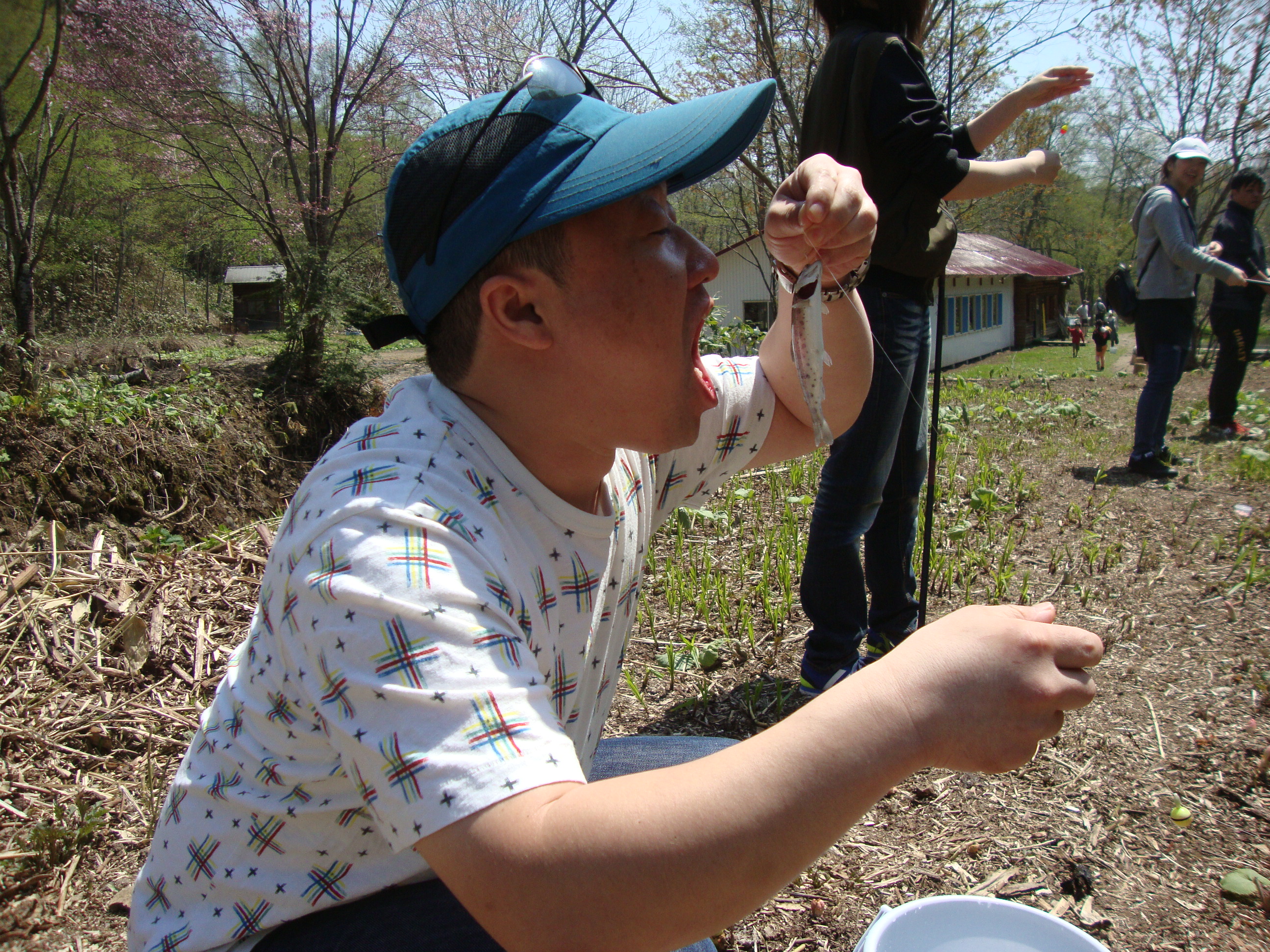 お昼には釣った魚と採った山菜をみんなでおいしく頂きました♪